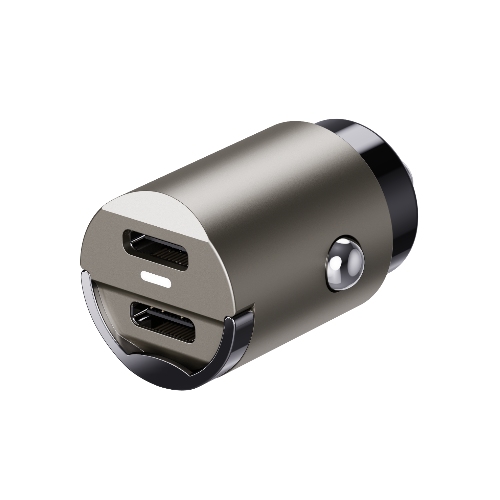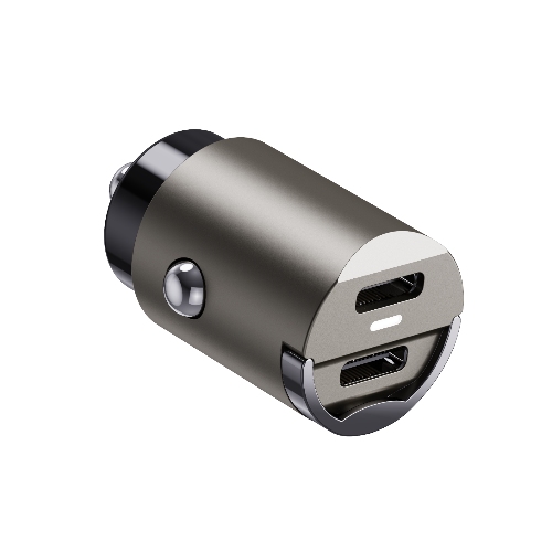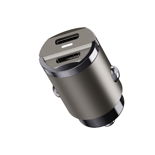 Dual usbC car charger with OEM logo and package for retailers,with LED and small metal ring ,easy to take and convenient to use