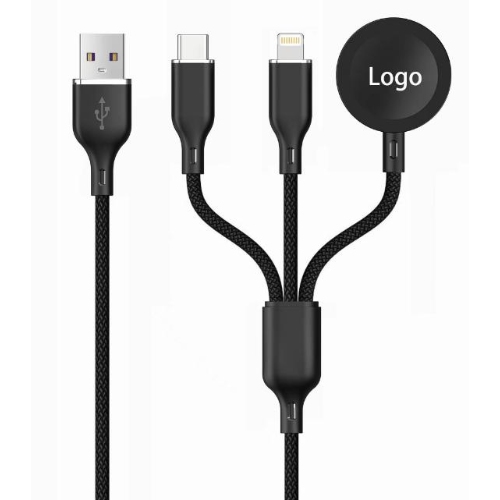 -Multi-function 3 in 1 cable,USBA to typeC+ Lightning+wireless charger for smart watch